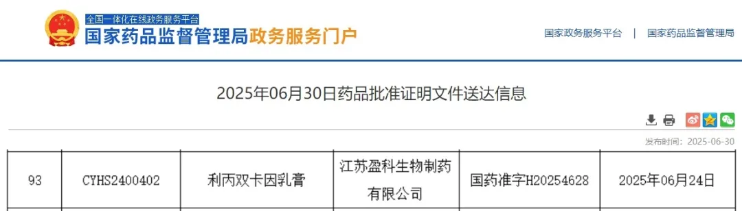 近日,斯坦德科創成功助力江蘇盈科生物制藥有限公司(以下簡稱“盈科生物”)申報的利丙雙卡因乳膏獲批上市(批準文號:國藥準字H20254628)。