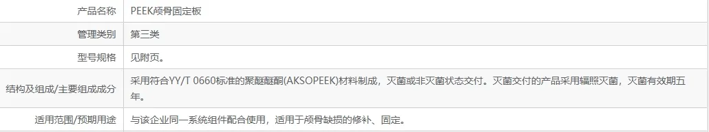 PEEK 顱骨固定板