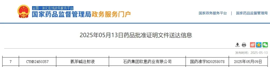 近日,斯坦德科創(chuàng)成功助力石藥集團歐意藥業(yè)有限公司(簡稱:“石藥歐意”)申報的氨茶堿注射液獲批上市。