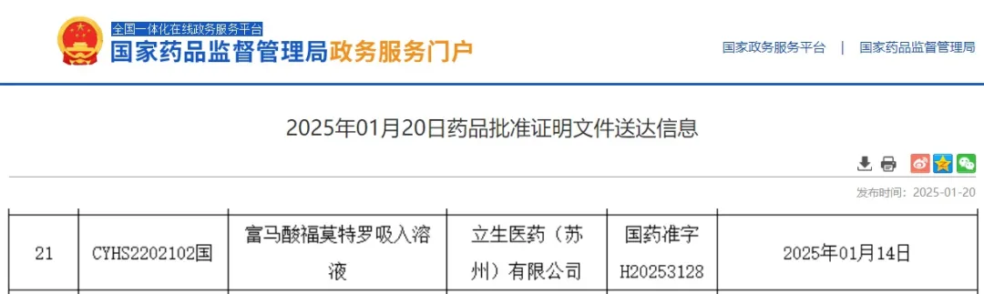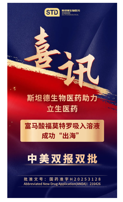 近日,斯坦德科創醫藥科技(青島)有限公司成功助力立生醫藥(蘇州)有限公司(以下簡稱“立生醫藥”)生產的富馬酸福莫特羅吸入溶液成功獲得國家藥監局(NMPA)批準上市。此前,該藥已獲得美國食品藥品監督管理局(FDA)的批準上市,實現了中美雙報雙批。