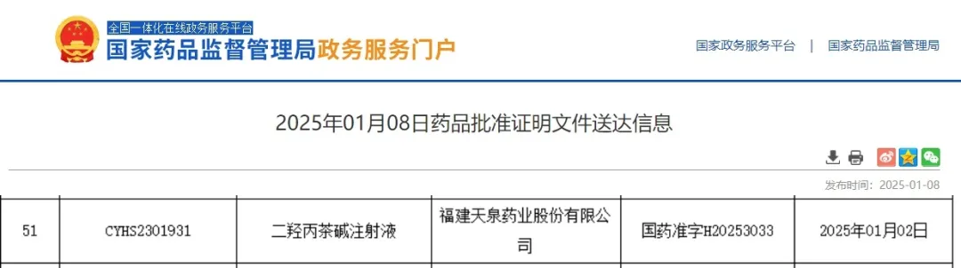 近日,斯坦德科創(chuàng)成功助力福建天泉藥業(yè)股份有限公司(以下簡(jiǎn)稱“天泉藥業(yè)”)申報(bào)的二羥丙茶堿注射液獲批上市。