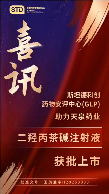 斯坦德科創(chuàng)藥物安評(píng)中心(GLP)為天泉藥業(yè)二羥丙茶堿注射液的上市申請(qǐng)獲批提供了特殊安全性試驗(yàn)技術(shù)支持。
