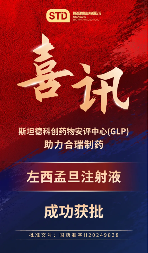 斯坦德科創(chuàng)藥物安評中心(GLP)為合瑞制藥左西孟旦注射液的上市申請獲批提供了安全性實驗技術(shù)支持。斯坦德生物醫(yī)藥藥學(xué)實驗室為其提供了多維度藥學(xué)研究支持。
