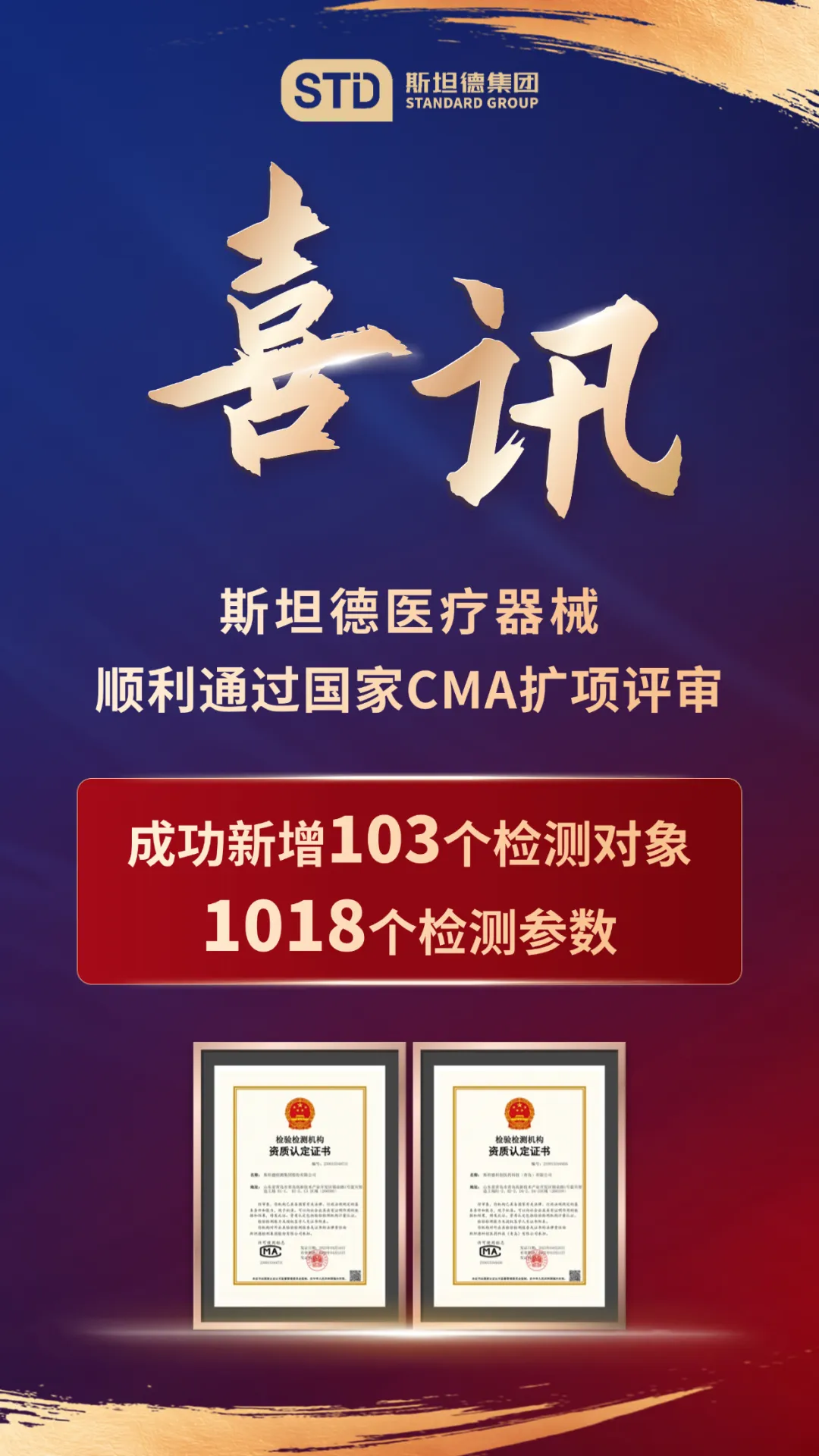 近日,斯坦德醫(yī)療器械順利通過國家認證認可監(jiān)督管理委員會CMA資質(zhì)擴項評審,在有源醫(yī)療器械和無源醫(yī)療器械領(lǐng)域共新增103個檢測對象,涉及1018個檢測參數(shù)。新增能力范圍已于2025年9月5日正式生效。
